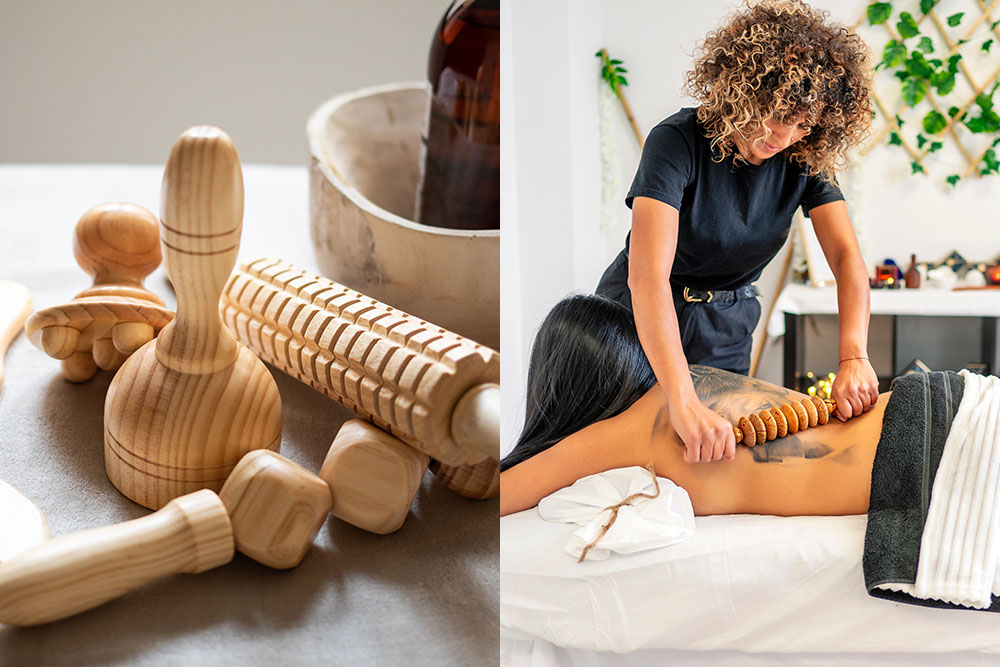 Technique de massage issue de la médecine traditionnelle orientale qui utilise des instruments en bois pour modeler la silhouette. On l’appelle aussi la “thérapie du bois”. Ce massage, couplé à des techniques manuelles de massage plus classiques, vise à activer le réseau lymphatique du corps.